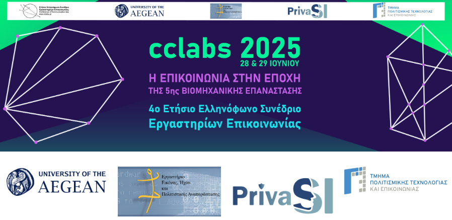 The 4th Annual Greek-speaking Conference of Communication Labs (CCLABS 2025) was successfully held online on June 28 and 29, 2025. The conference was organized by the Image, Sound and Cultural Representation Laboratory and the PrivaSI Lab of the Department of Cultural Technology and Communication at the University of the Aegean. This year’s thematic focus was “Communication in the Era of the 5th Industrial Revolution,” which served as the foundation for a wide-ranging interdisciplinary dialogue between researchers, professionals, and academics across the fields of communication, journalism, media, and cultural studies.